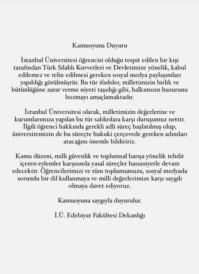 İstanbul Üniversitesi, sosyal medya paylaşımlarıyla hedef gösterilen ve özel bilgileri ifşa edilen öğrencisine soruşturma açtı.…